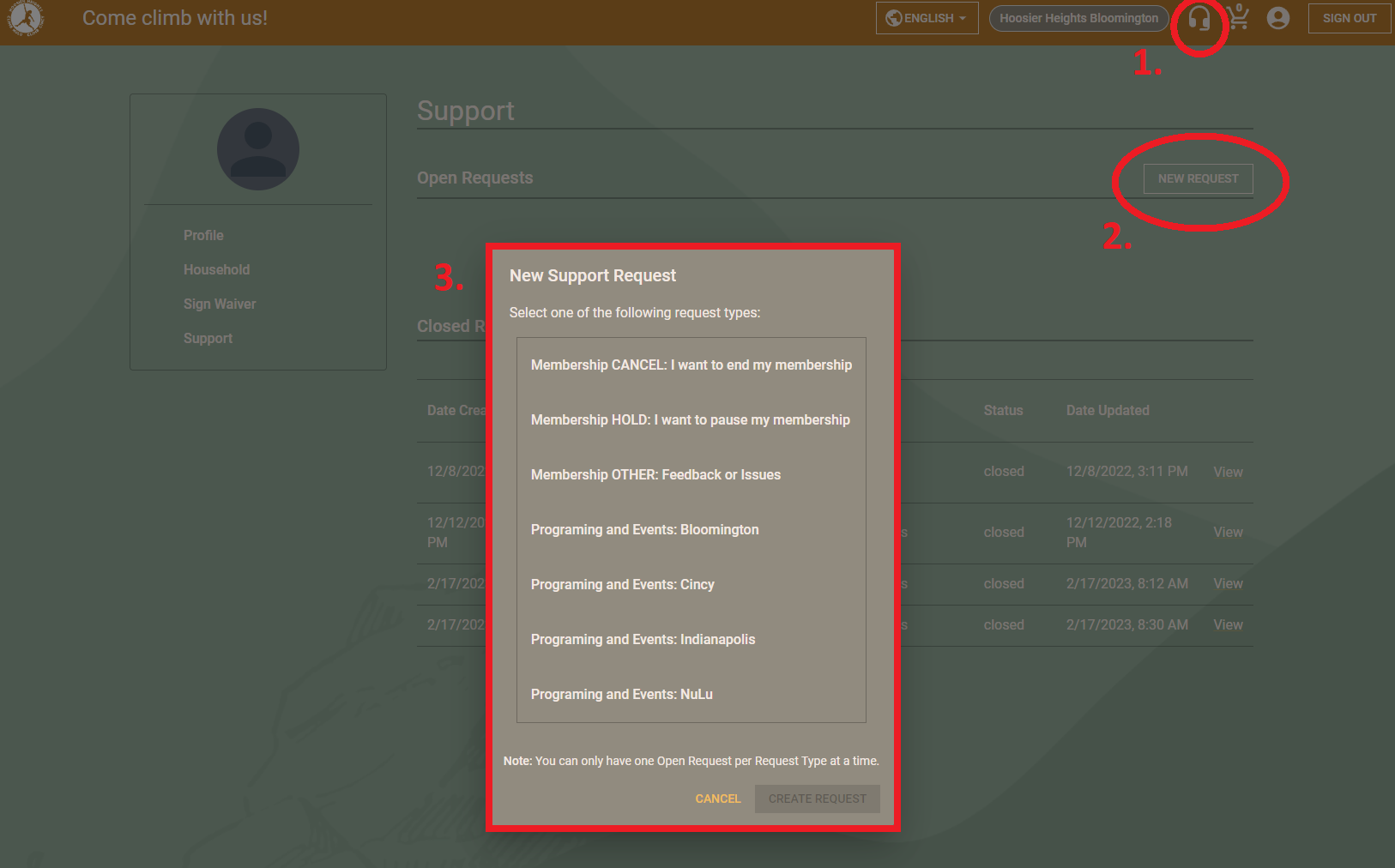 Select the “NEW REQUEST” button
